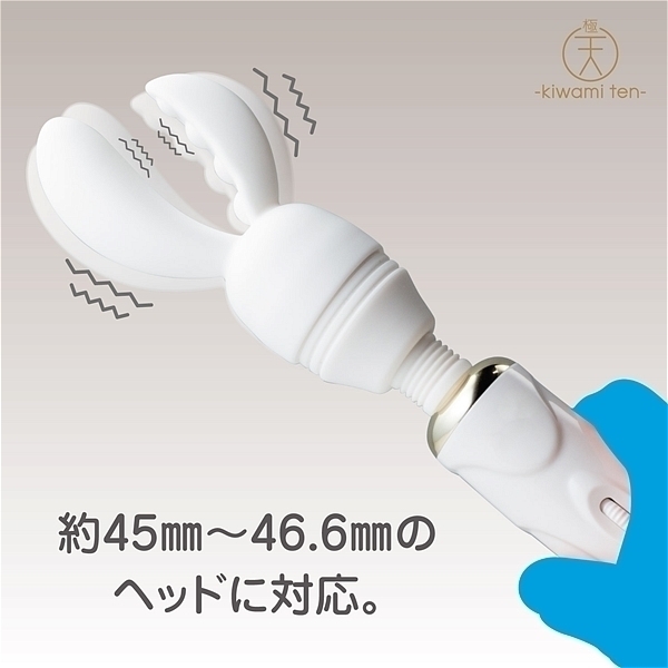 2016年発売より売上を伸ばし続けている極天。快感を極め女性の声を生かした電マのアタッチメントをご用意しました。〜やさしく、激しく、絶頂へ導く〜デンマ用のソフトアタッチメントです。約45mm〜46.6mmのヘッドに対応。からだにやさしいシリコン素材。3種類のパターンで様々なシーンでお楽しみ頂けます。<finger>疑似バイブや挟み込めば手ごろな手コキ感覚を担当出来ます。<rabbit>間に挟んだり、押し当てたり、様々なシーンでご利用可能!<crab>女性は挿入とクリ○リスのW刺激で快感倍増?(デンマ用)(シリコン採用)(パターン3種)(水洗い可能)(安心・安全の世界標準設計)<使用上のご注意>・小さなお子様の手の届かないところで保管してください。・シンナー、アルコールなどで絶対にふかないでください。・使用後はきれいな布で表面をふいてください。中性洗剤または専用洗剤を使用してください。・本体に異常を感じたり、変形・破損した場合は使用しないでください。