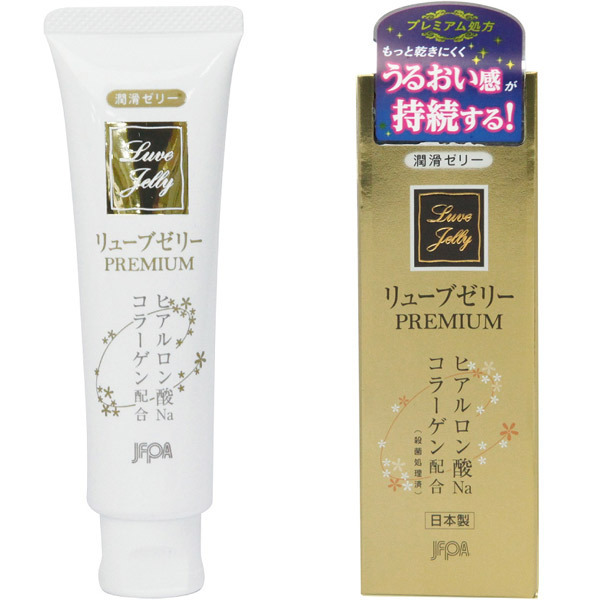 プレミアムな理想のうるおい長持ち♪ヒアルロン酸Naとコラーゲンの保湿成分をW配合した「リューブゼリーPREMIUM 55g」。自然ななめらかさでさらっとした使い心地!ヒアルロン酸Naとコラーゲンの相乗効果により、スタンダードタイプに比べて潤滑性持続時間が3倍に(ジェクス社調べ)。無臭・無色透明の水溶性なのでベタつかず、水またはぬるま湯で簡単に流せます。殺菌処理、皮ふアレルギーテスト済み(すべての人にアレルギーが起きないというわけではありません)。性交時のうるおい不足などでお悩みの方に!ロングセラーのデリケートゾーン専用潤滑ゼリー『リューブゼリー』に、ヒアルロン酸Naとコラーゲンを配合したプレミアムタイプです。使いやすいワンタッチキャップ採用。【成分】精製水、グリセリン、PG、親水性ポリマー、pH調整剤、ヒアルロン酸Na、加水分解コラーゲン、パラベン。