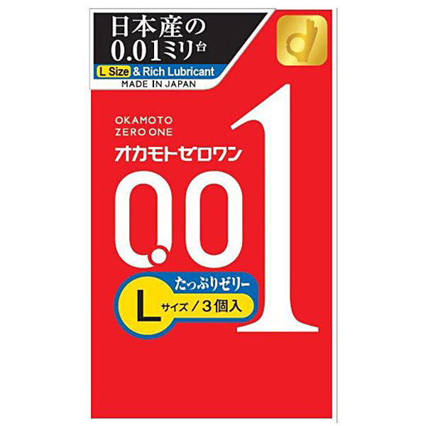 HOME > コンドーム > 薄い・厚い > 【オカモト史上最薄0.01】オカモト ゼロワン (Lサイズ たっぷりゼリー) 3個入