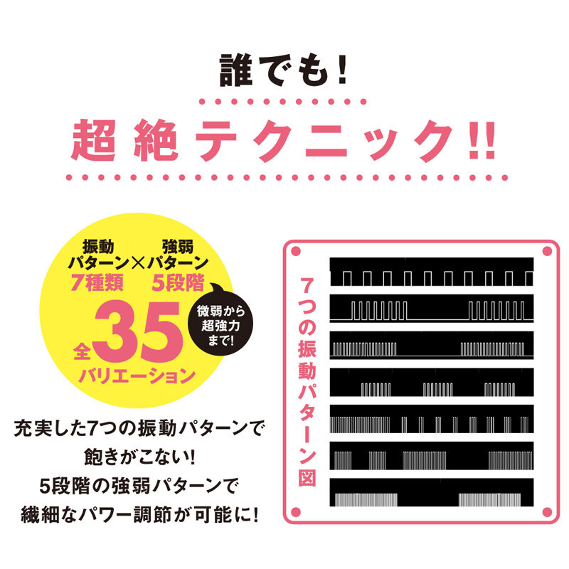 女性のオナニーに欠かせないアイテムと言えば電マ!?女性から圧倒的人気の電マに、全35種の振動を持つ多機能アイテム登場。●肌触りのいい高品質シリコンを採用●女性が手に持って疲れない、ちょうどいいサイズ&ちょうどいい軽さ●ジャバラネックが360度回転●快感ポイントをピンポイントに刺激●振動7種類・強弱パターン5段階、計35の多彩なアクション●真ん中ボタン:電源ON/OFF&振動パターン変更●上下ボタンで振動の強弱調節。ビギナーさんはもちろん、アダルトグッズの刺激に慣れた方をも確実にイカすミニ電マです。