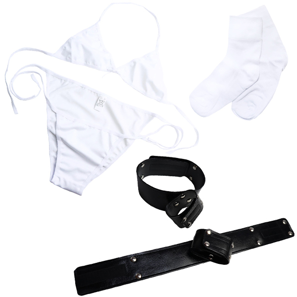HOME > SMグッズ・拘束具 > 枷・他(手足首・全身) > ggシリーズ 「手と太もも」下着付きSMグッズ 〜ブラ・パンツ・ソックス付き〜