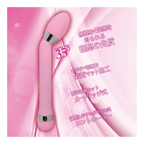 この角度が凄い!セルフプレジャーにピッタリ!おじぎをするように頭部が曲がったタイプのスティックトイが新登場!全長19センチのセルフプレジャー向けのスティックローター。傾斜度35度、狙った箇所に当てやすいように頭部の角度を曲げました。この傾斜度が、無理な体勢を強いらずに、自然に楽で気持ち良い姿勢へ促すことでしょう!さらに、振動を強弱調整しやすいダイヤル式コントローラー。電池をセットしやすい、カートリッジ式。使いやすいサイズとなる、全長19センチに、頭部直径3cm。握りやすい、スティック部直径2センチ。軽くて持ちやすい、重さ62グラム。すべすべと肌ざわり良い、マット表面加工。貴方自身をもっと輝かせる、セルフなプレジャーを応援するスティックローター!●カラー:ピンク