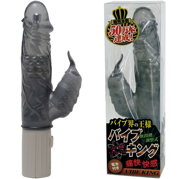 販売本数50万本達成!その人気はまさにバイブ界の王様!バイブ選びに迷ったら、まずはこれ!性能・機能・大きさ・ボディデザイン・お値段の全てが満足できるハイクオリティのバイブレーター「バイブキング」!多くのリピーターに愛されて50万本の称号は伊達じゃありません!しっかりと力強いくねりスイングに強烈なバイブレーション。二枚舌でテンポよく刺激するフラッパー(子機)と、回転と振動が別々で操作できるスライドコントローラー。挿入可能長さ10cmに太さ3.5cmとなる小ぶりでスリムなジャパニーズサイズ。女性に受ける清潔感のあるクリアカラーにゴテゴテしないスッキリとしたボディデザイン。安心の純日本製。シンプルで使いやすく初めての人でもストレスなくお使いいただけるバイブレーターです。こちらは凹凸の刺激が気持ち良い高刺激なパール入り仕様となっております。カラー:スモーク